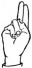 На ћирилици написано НИКОДИЈЕ РАДОВАНЧЕВИЋ састоји се из 20 слова [?]. Исписано ћириличном једноручном азбуком за глувонеме:
